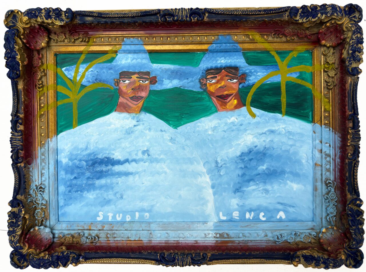 Studio Lenca’s process starts with personal memories and is underpinned by social activism and different forms of praxis. Studio Lenca paintings tell an autobiographical story which navigates borders and identities destroyed, redrawn and erased through colonisation and war. The portraits depict the artist and his community proudly wearing hats and vibrant colours in noble defiance of the ‘western’ discourse around migration.